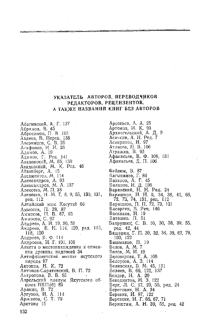 This is the HTML version of 63-10. Библиография ЯАССР (1931-1955). Том 1. История изучения. История народов. Социалистическое строительство. Москва, 1958 Page 151