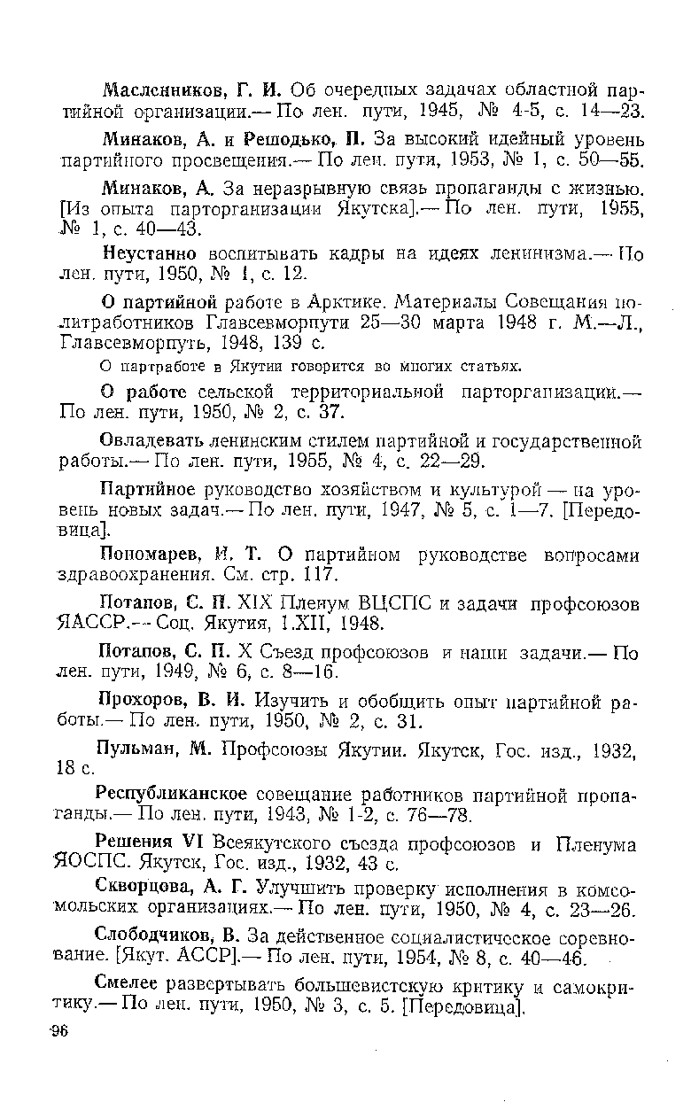 This is the HTML version of 63-10. Библиография ЯАССР (1931-1955). Том 1. История изучения. История народов. Социалистическое строительство. Москва, 1958 Page 95