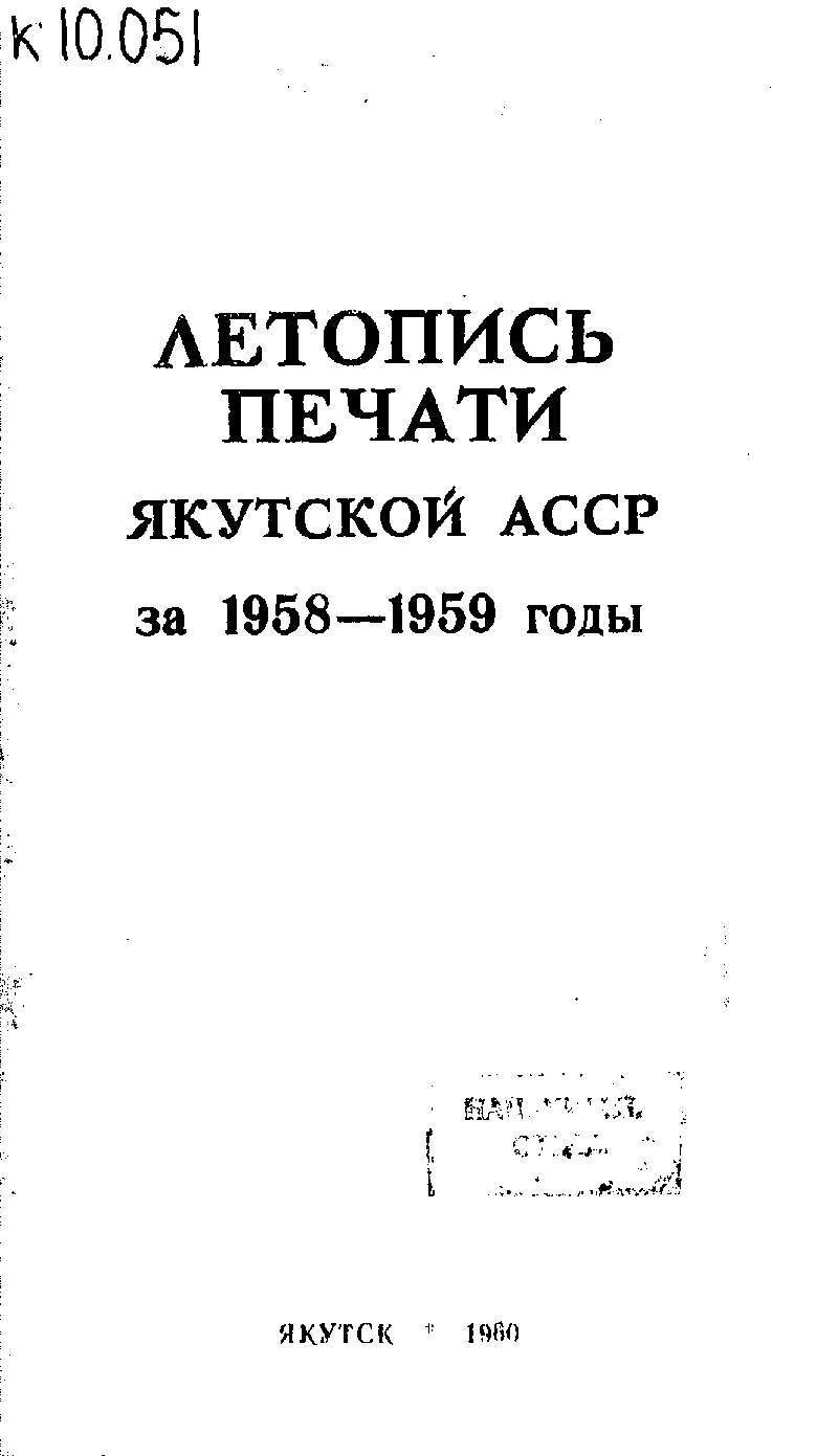 This is the HTML version of 64-19. Летопись печати ЯАССР за 1958-1959 годы. Якутск, 1960 Page 1