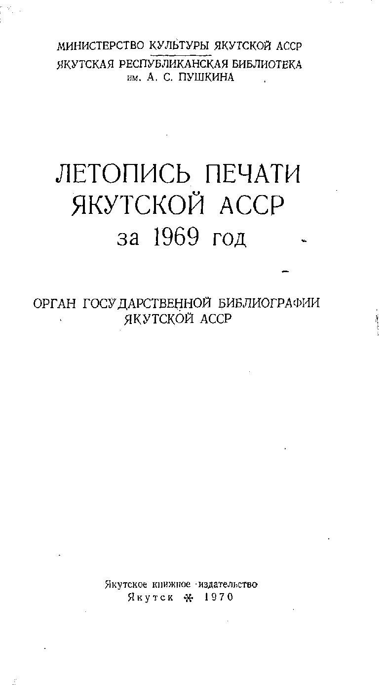 Летопись печати ЯАССР за 1958-1959 годы. Якутск, 1960