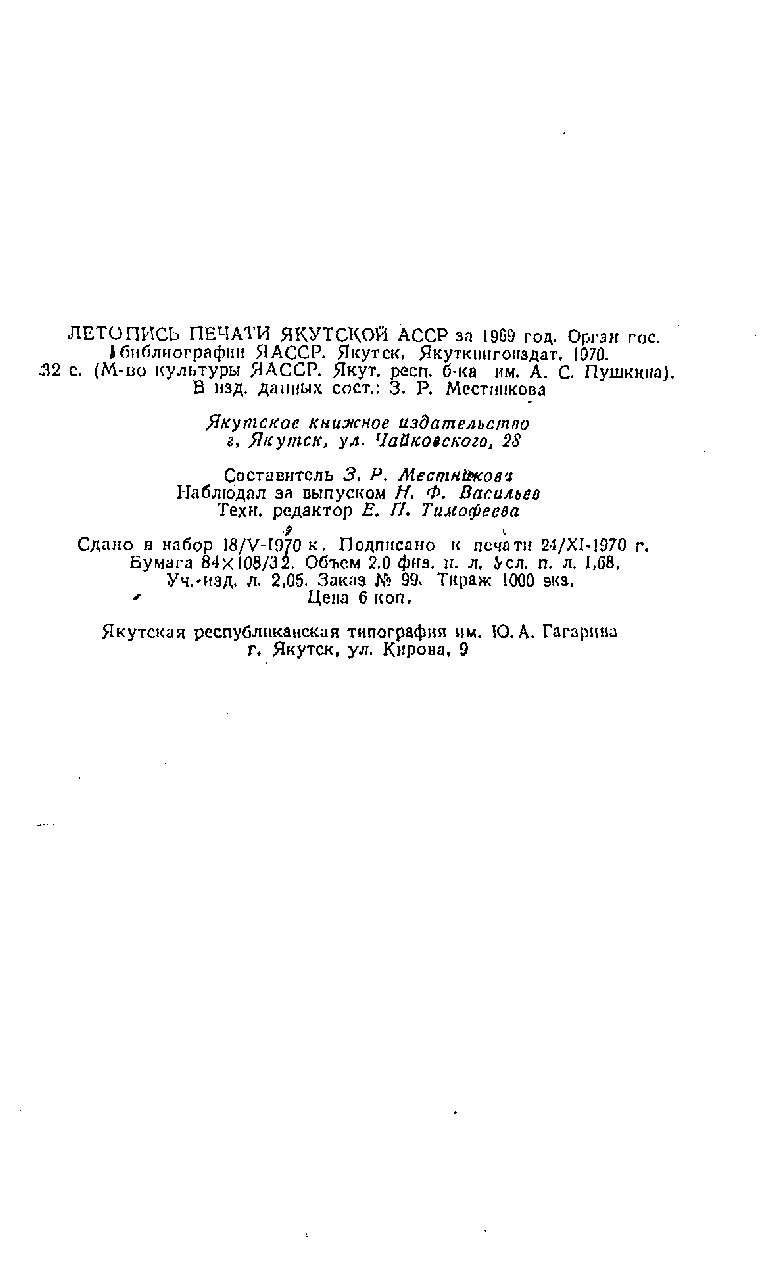 Летопись печати ЯАССР за 1958-1959 годы. Якутск, 1960