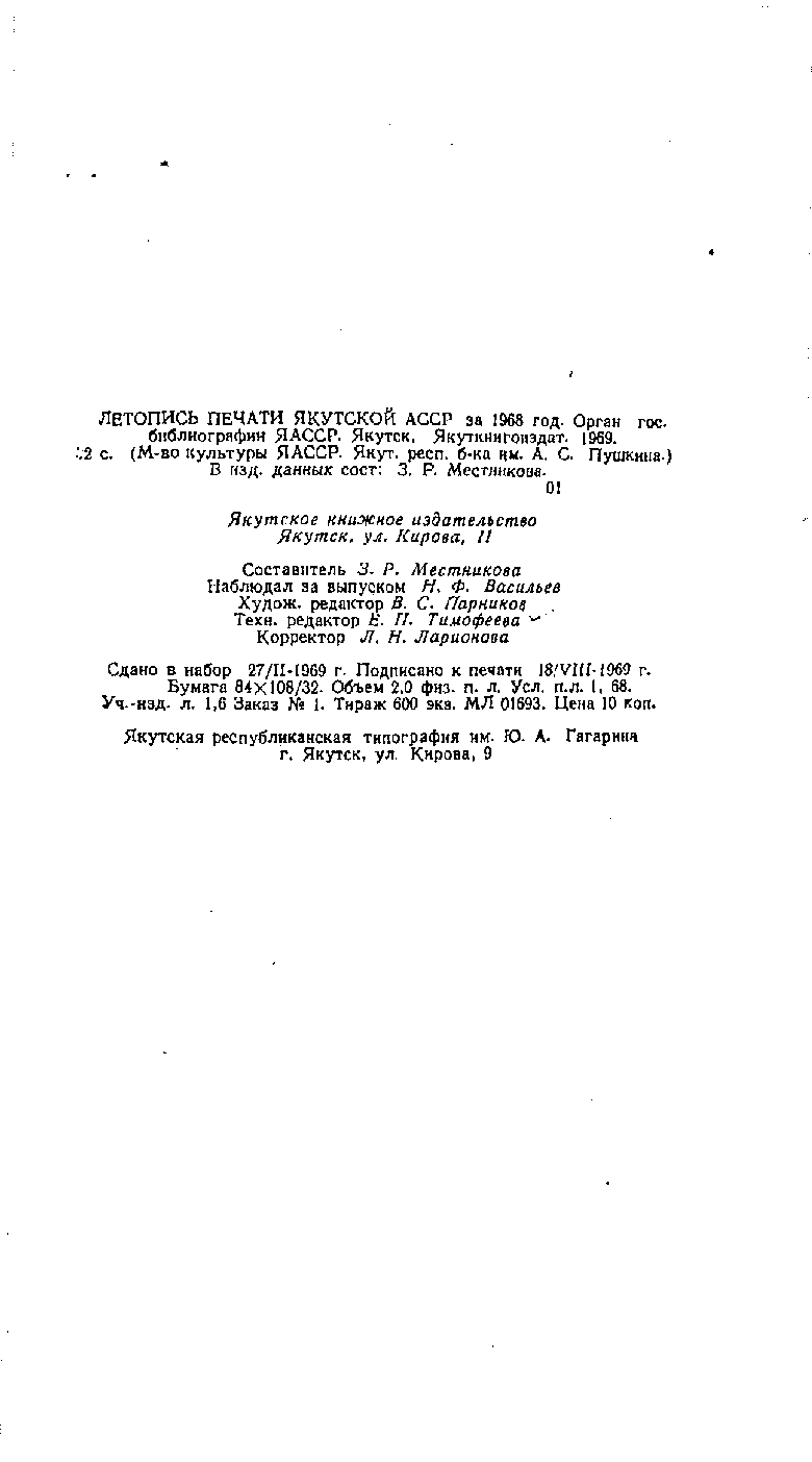 This is the HTML version of 64-19. Летопись печати ЯАССР за 1958-1959 годы. Якутск, 1960 Page 479