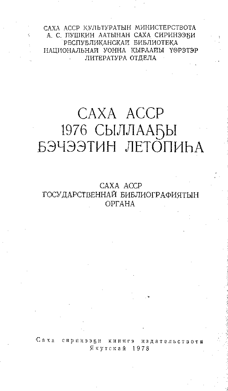 This is the HTML version of 64-22. Летопись печати ЯАССР за 1976 год. Якутск, 1978 Page 1