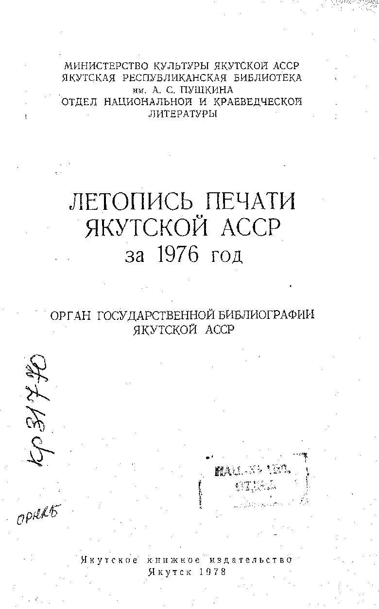 This is the HTML version of 64-22. Летопись печати ЯАССР за 1976 год. Якутск, 1978 Page 2