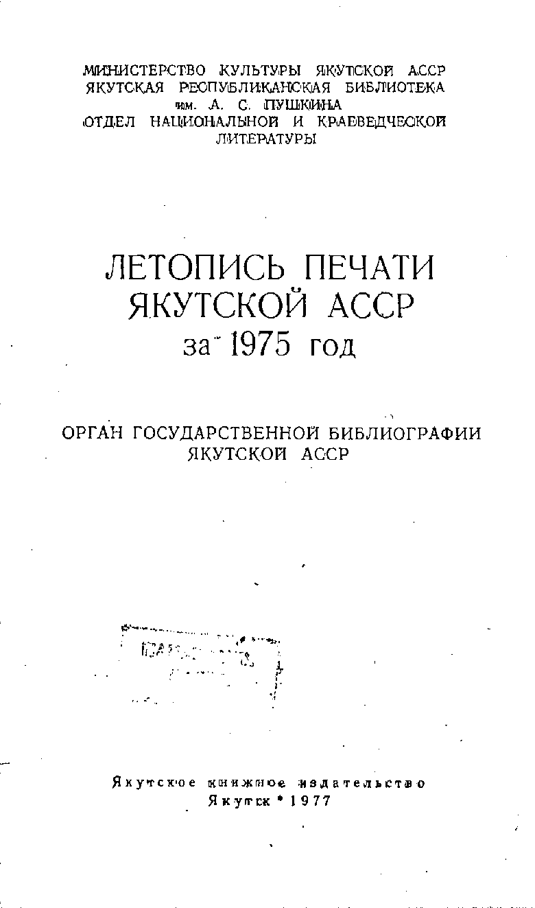 Летопись печати ЯАССР за 1975 год. Якутск, 1977