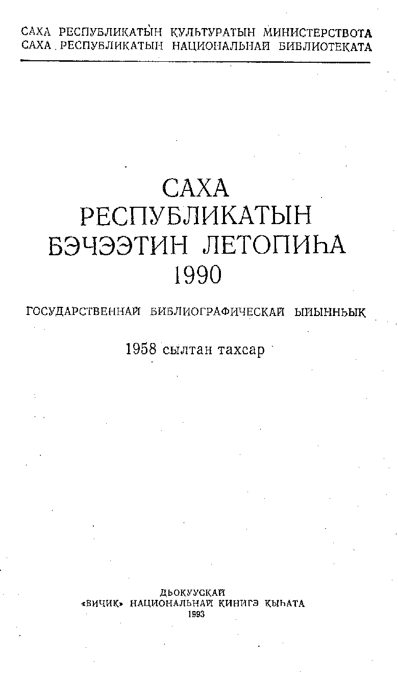 Летопись печати Республики Саха (Якутия) за 1990 год. Якутск, 1993
