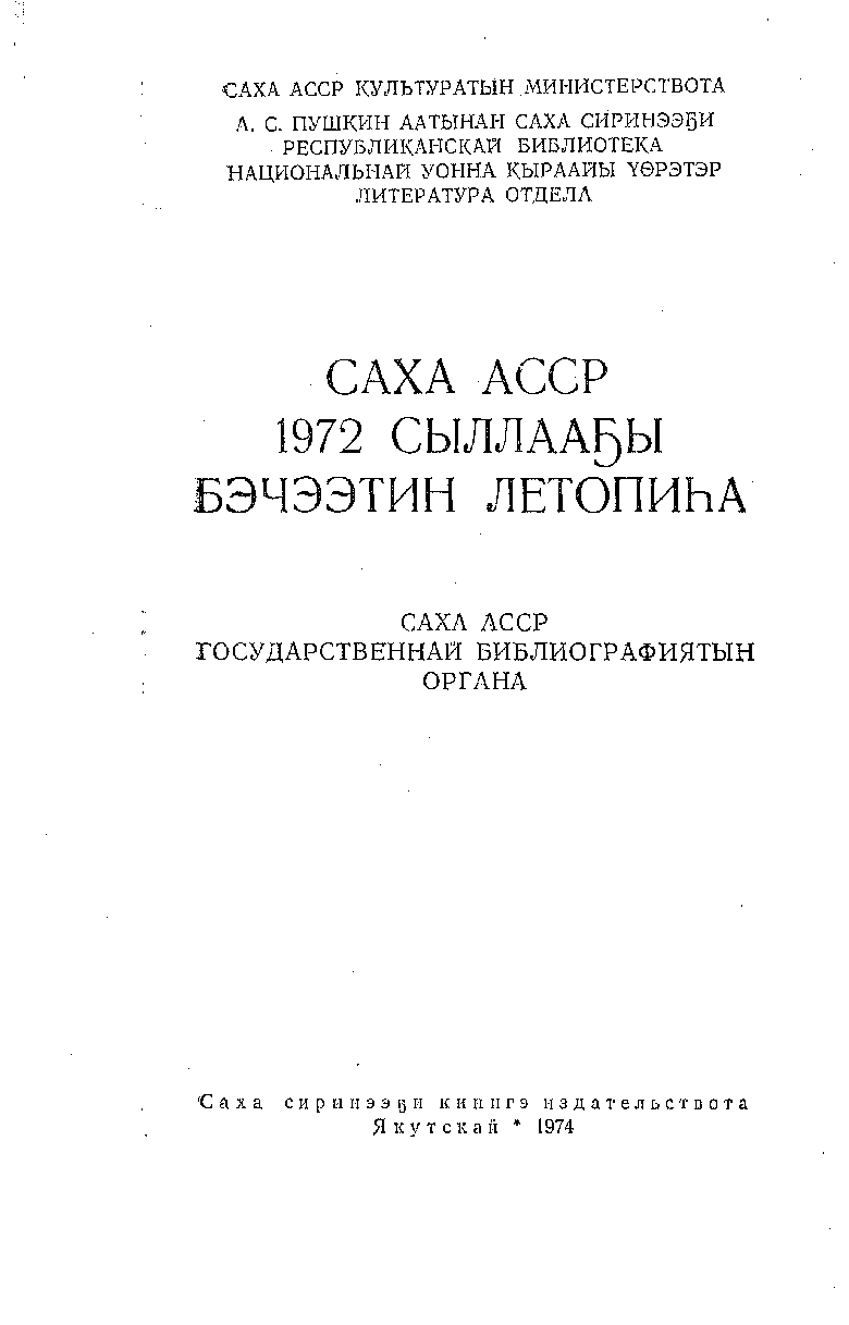 This is the HTML version of 64-29. Летопись печати ЯАССР за 1972 год. Якутск, 1974 Page 1