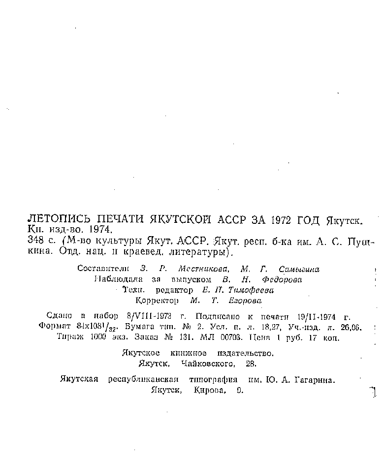 Летопись печати ЯАССР за 1972 год. Якутск, 1974