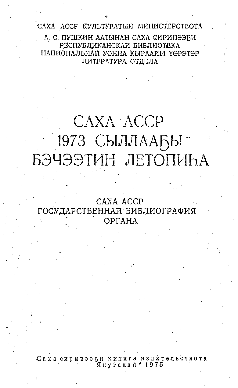 Летопись печати ЯАССР за 1973 год. Якутск, 1975