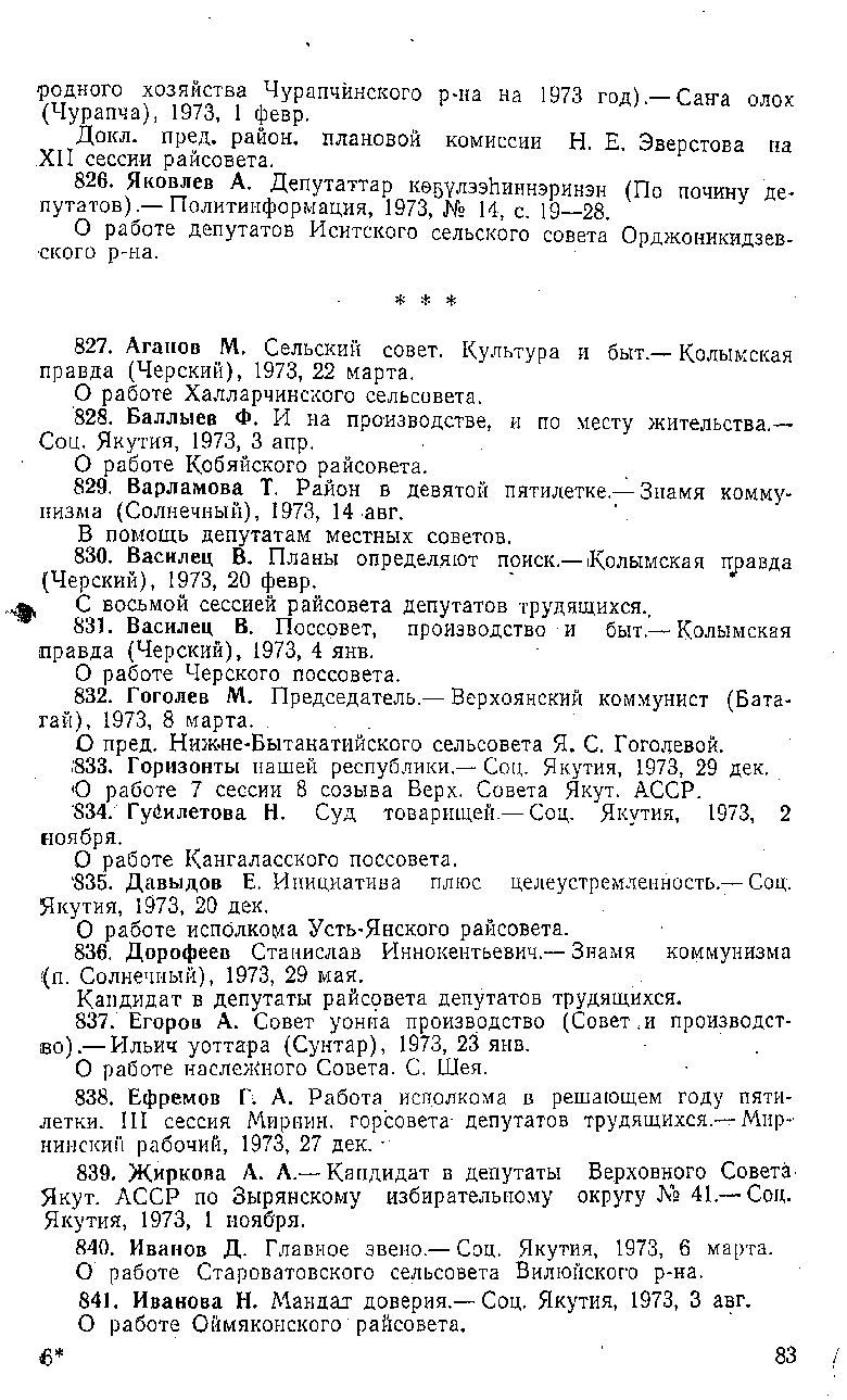 This is the HTML version of 64-31. Летопись печати ЯАССР за 1973 год. Якутск, 1975 Page 79