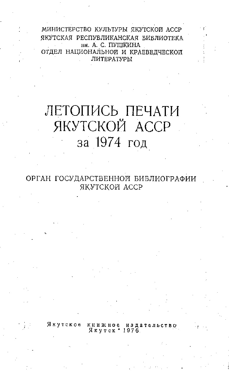 This is the HTML version of 64-35. Летопись печати ЯАССР за 1974 год. Якутск, 1976 Page 2