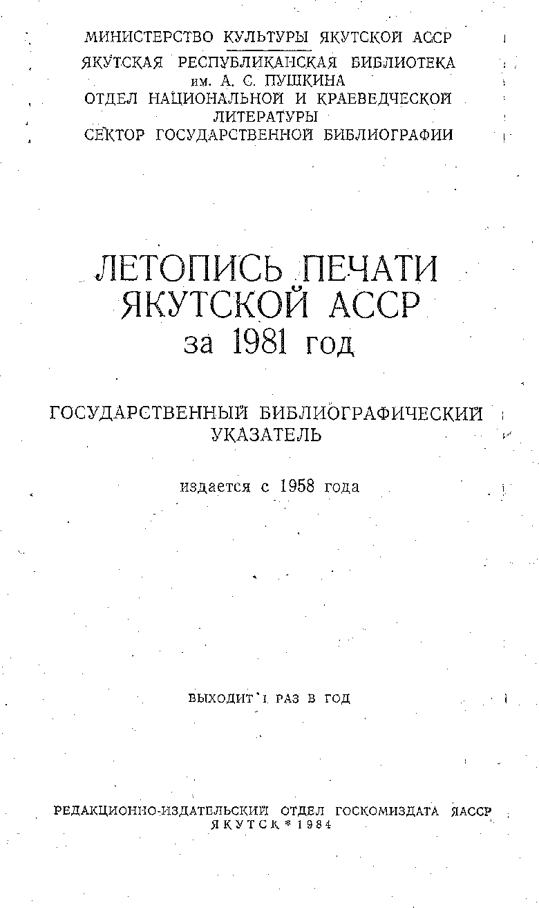 This is the HTML version of 64-42. Летопись печати ЯАССР за 1981 год. Якутск, 1984 Page 2