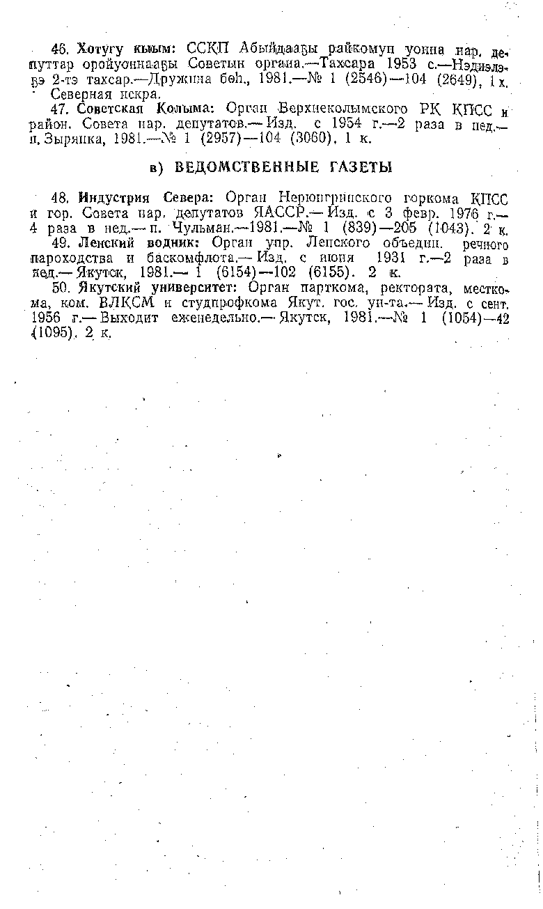 This is the HTML version of 64-42. Летопись печати ЯАССР за 1981 год. Якутск, 1984 Page 81