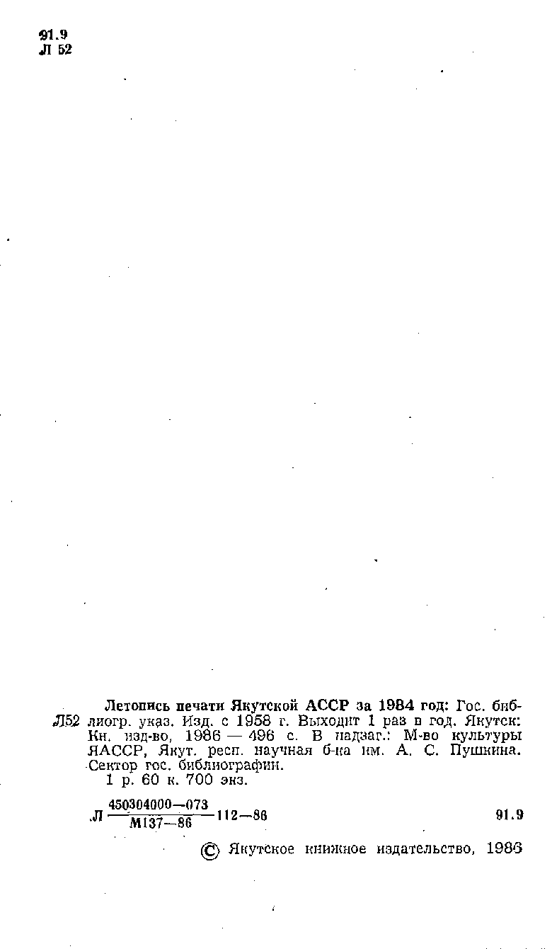 This is the HTML version of 64-48. Летопись печати ЯАССР за 1984 год. Якутск, 1986 Page 3