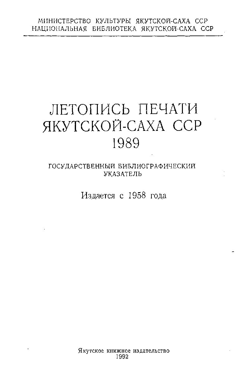 Летопись печати ЯАССР за 1989 год. Якутск, 1992