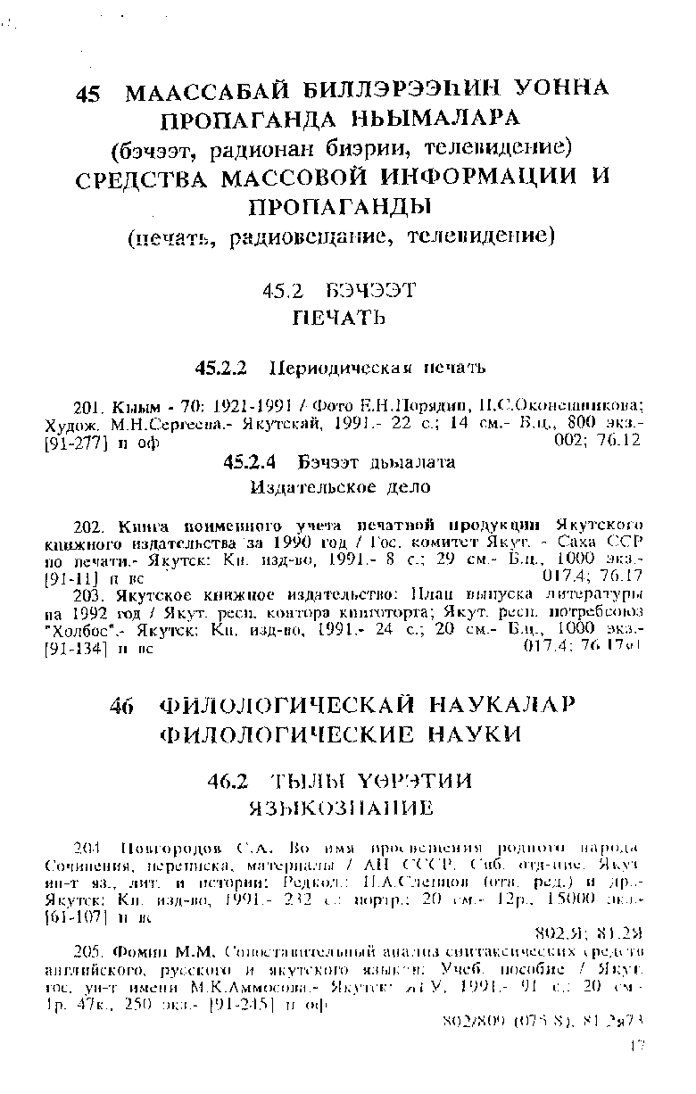 This is the HTML version of 64-56. Летопись печати Республики Саха (Якутия) за 1991 год. Якутск, 1995 Page 45