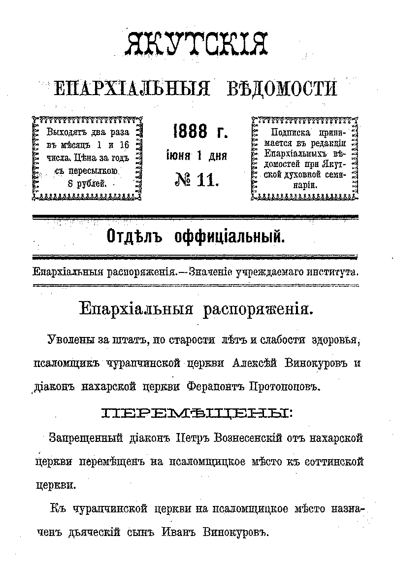 This is the HTML version of 73-1095. Якутские епархиальные ведомости - 1888. - №11 Page 1