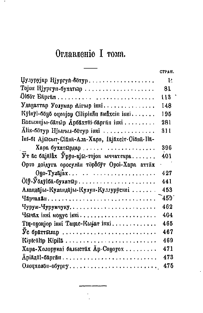 This is the HTML version of 8-1622. Образцы народной литературы якутов: Т. 1. Вып. 5. 9) Уут аас бэйэлээх Урунг-айыы-тойон ыччаттара; 9) Орто дойдуга ороhулаан тереебут Орой-Хара аттаах О5о-Тулаайах; 11) Елуу-Уедулбэ-бухатыыр; 12) Аландаайы-Куландаайы-Кулун-Куллуруускай; 13) Чаарчахаан; 14) Чурум-Чурумчуку; 15) Чыычаах икки моєус икки; 16) Тиин-о5онньор икки Танас-Кыйат икки; 17) Ус брааттыылар; 18) Кириисэлиир Кирилэ; 19) Хара-холорукай балыстаах Эр-Соєотох; 20) Эриэдэл-бэргэн; 21) ОлоЅхолоон-обургу – 1911. – 476 с. Page 3