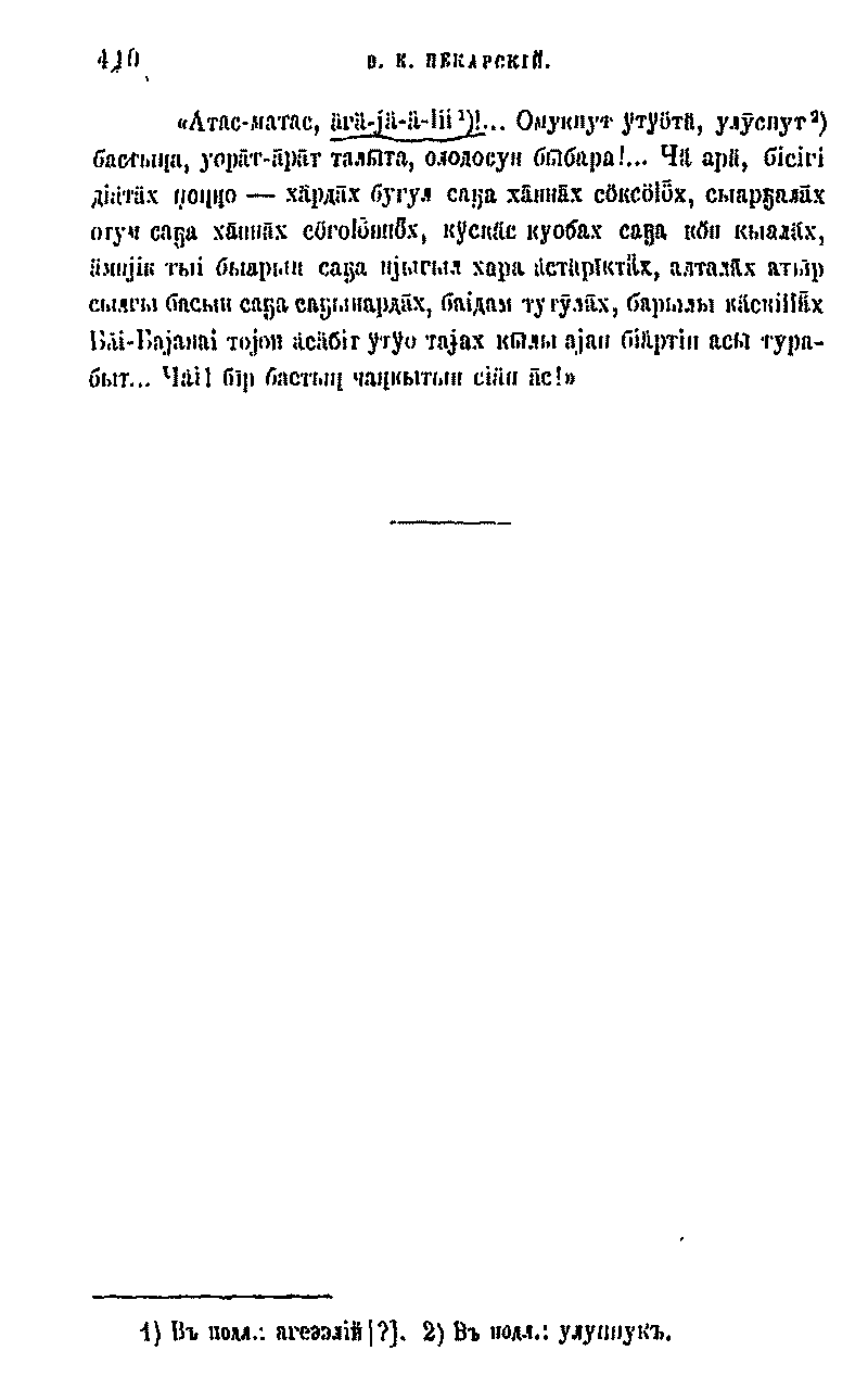 This is the HTML version of 8-1622. Образцы народной литературы якутов: Т. 1. Вып. 5. 9) Уут аас бэйэлээх Урунг-айыы-тойон ыччаттара; 9) Орто дойдуга ороhулаан тереебут Орой-Хара аттаах О5о-Тулаайах; 11) Елуу-Уедулбэ-бухатыыр; 12) Аландаайы-Куландаайы-Кулун-Куллуруускай; 13) Чаарчахаан; 14) Чурум-Чурумчуку; 15) Чыычаах икки моєус икки; 16) Тиин-о5онньор икки Танас-Кыйат икки; 17) Ус брааттыылар; 18) Кириисэлиир Кирилэ; 19) Хара-холорукай балыстаах Эр-Соєотох; 20) Эриэдэл-бэргэн; 21) ОлоЅхолоон-обургу – 1911. – 476 с. Page 439