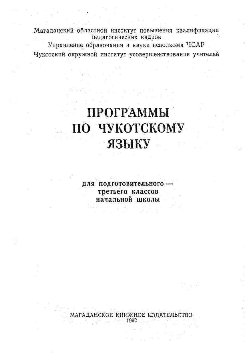 This is the HTML version of 89-28. Емельянова Н. Б. Программы по чукотскому языку. Магадан, 1992 Page 1