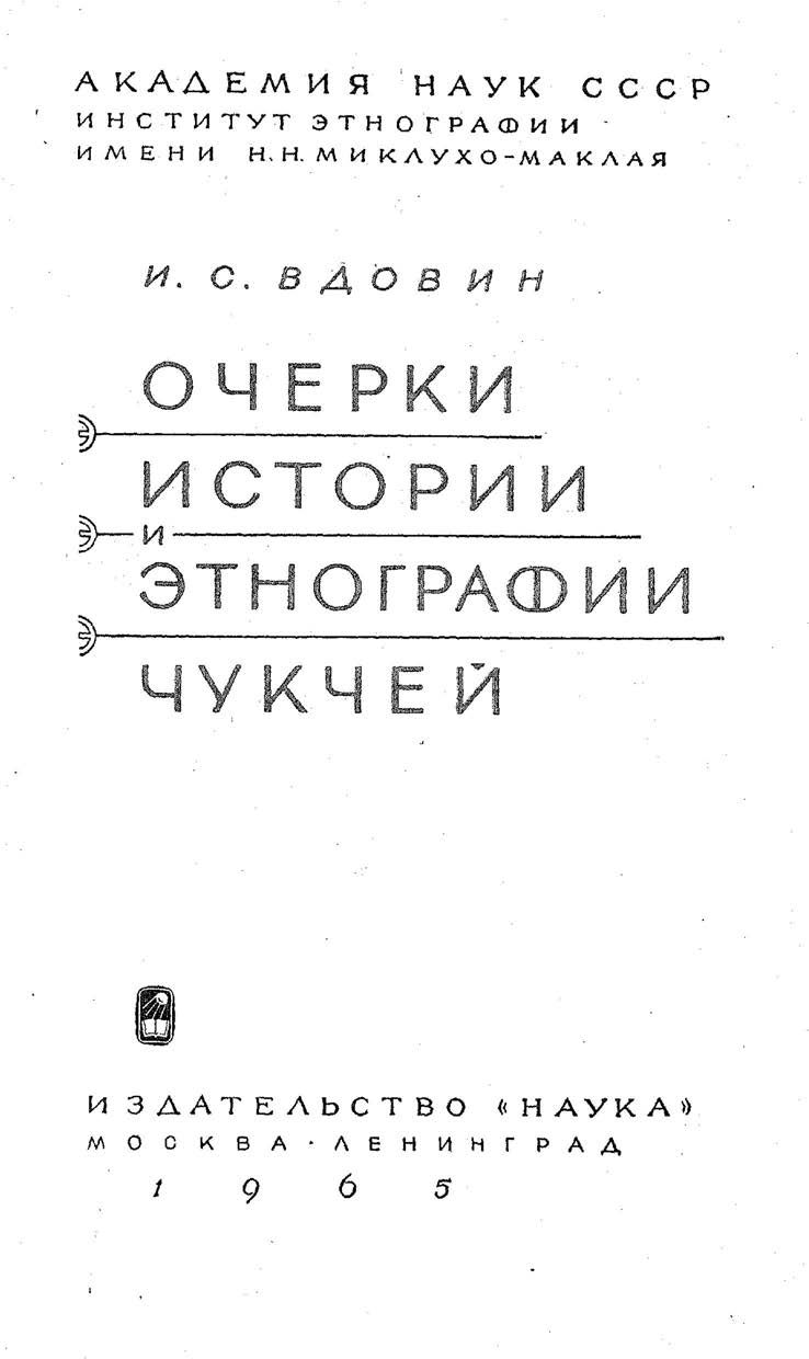 This is the HTML version of 89-35. Вдовин И. С. Очерки истории и этнографии чукчей. Ленинград, 1965 Page 1