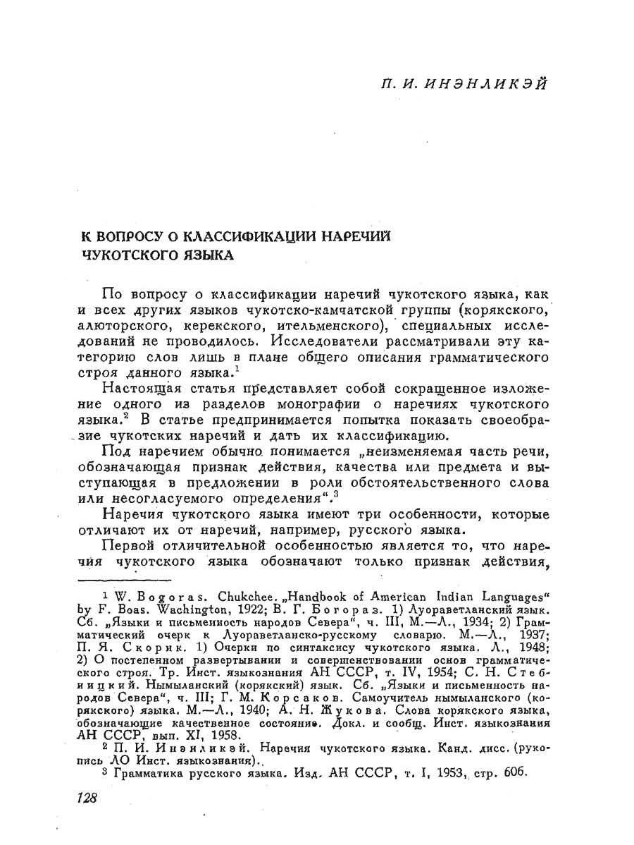 Инэнликэй П. И. К вопросу о классификации наречий чукотского языка
