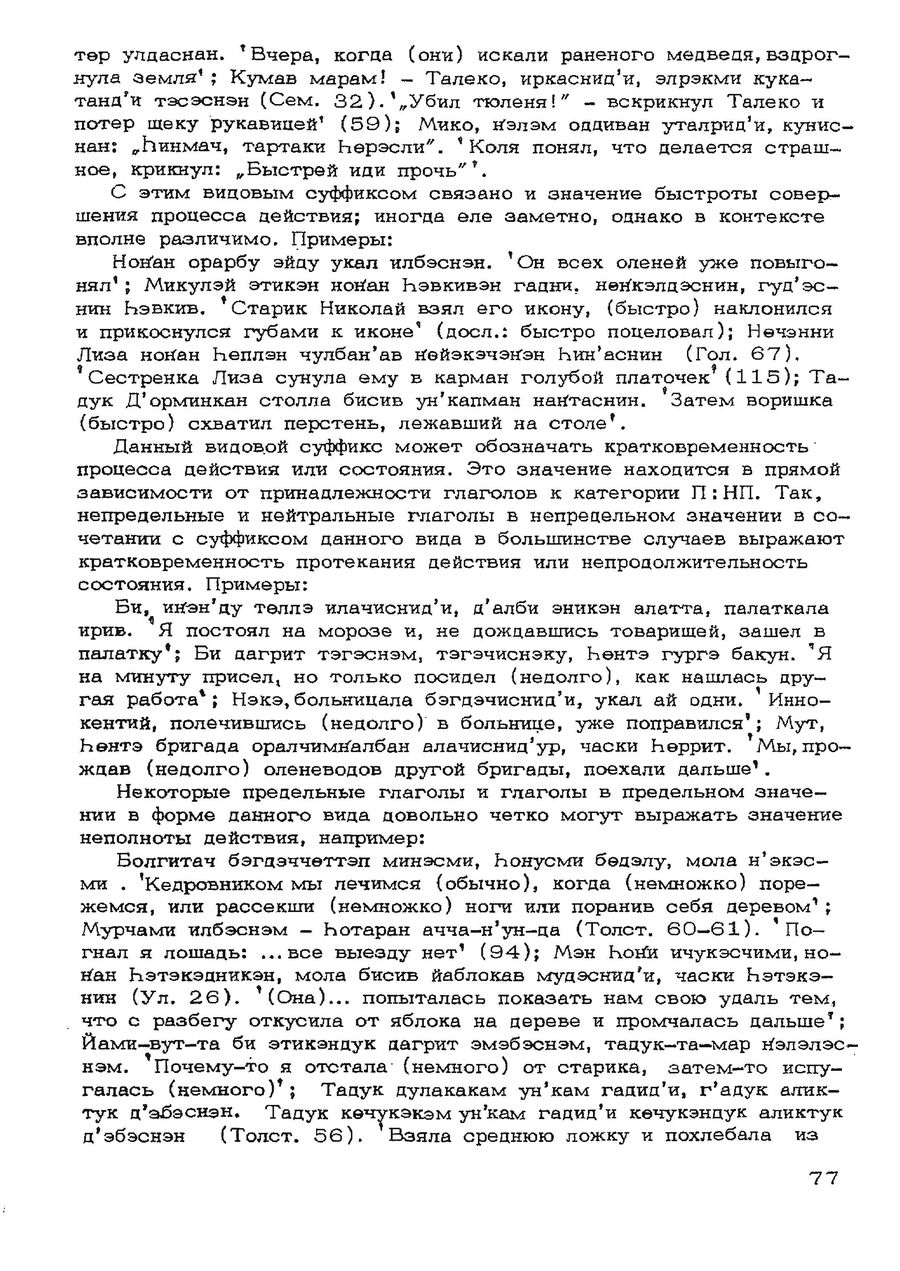 This is the HTML version of 90-15. Роббек В. А. Виды глаголов в эвенском языке. Ленинград, 1982 Page 77