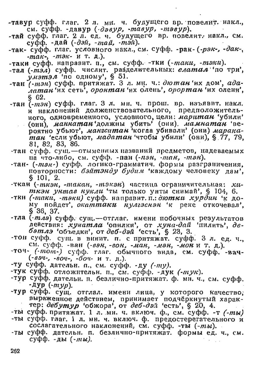 This is the HTML version of 90-3. Цинциус В. И. Очерк грамматики эвенского (ламутского) языка. Ленинград, 1947 Page 262
