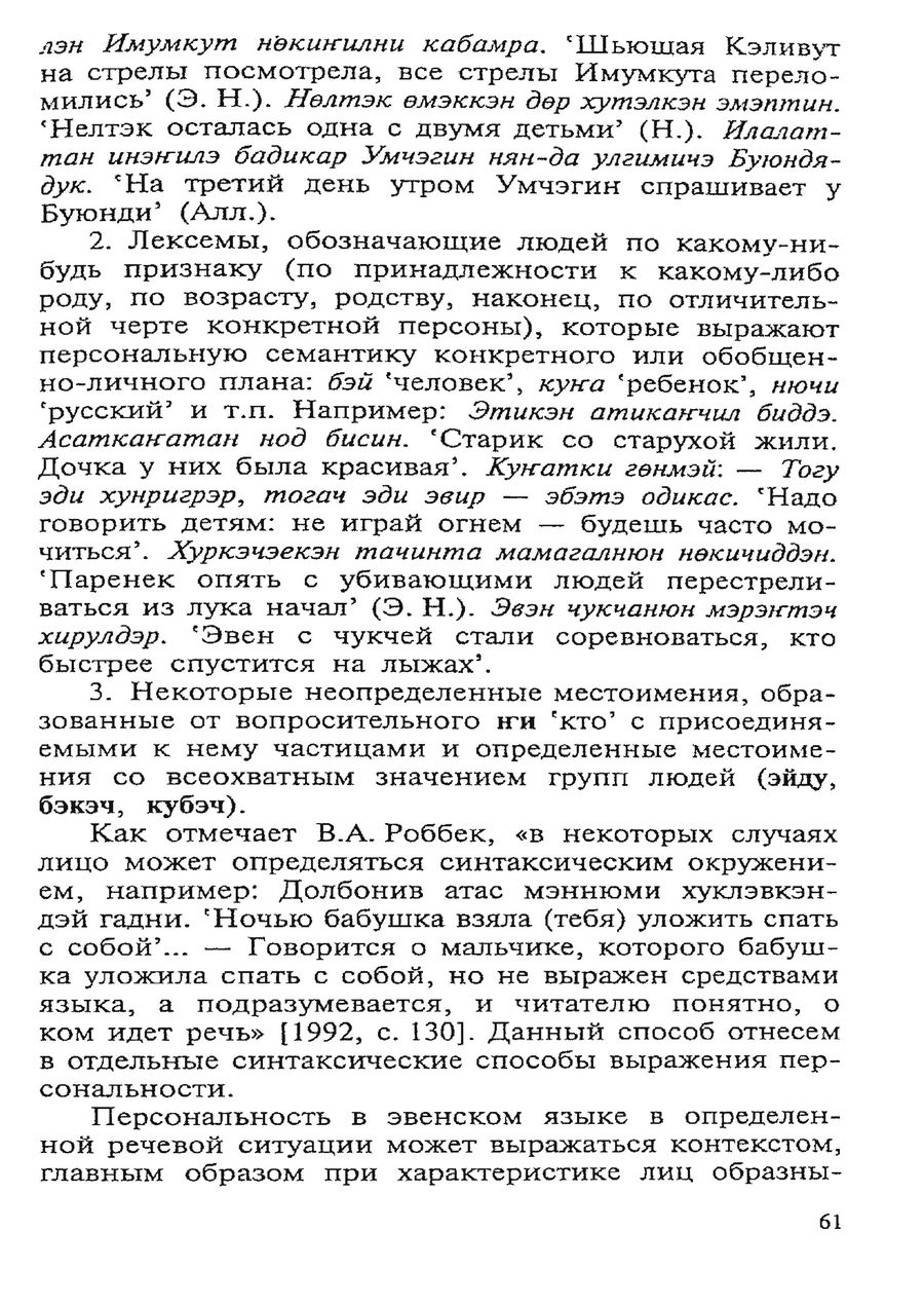 This is the HTML version of 90-31. Шарина С. И. Персональность и поссессивность в эвенском языке. Новосибирск, 2001 Page 61