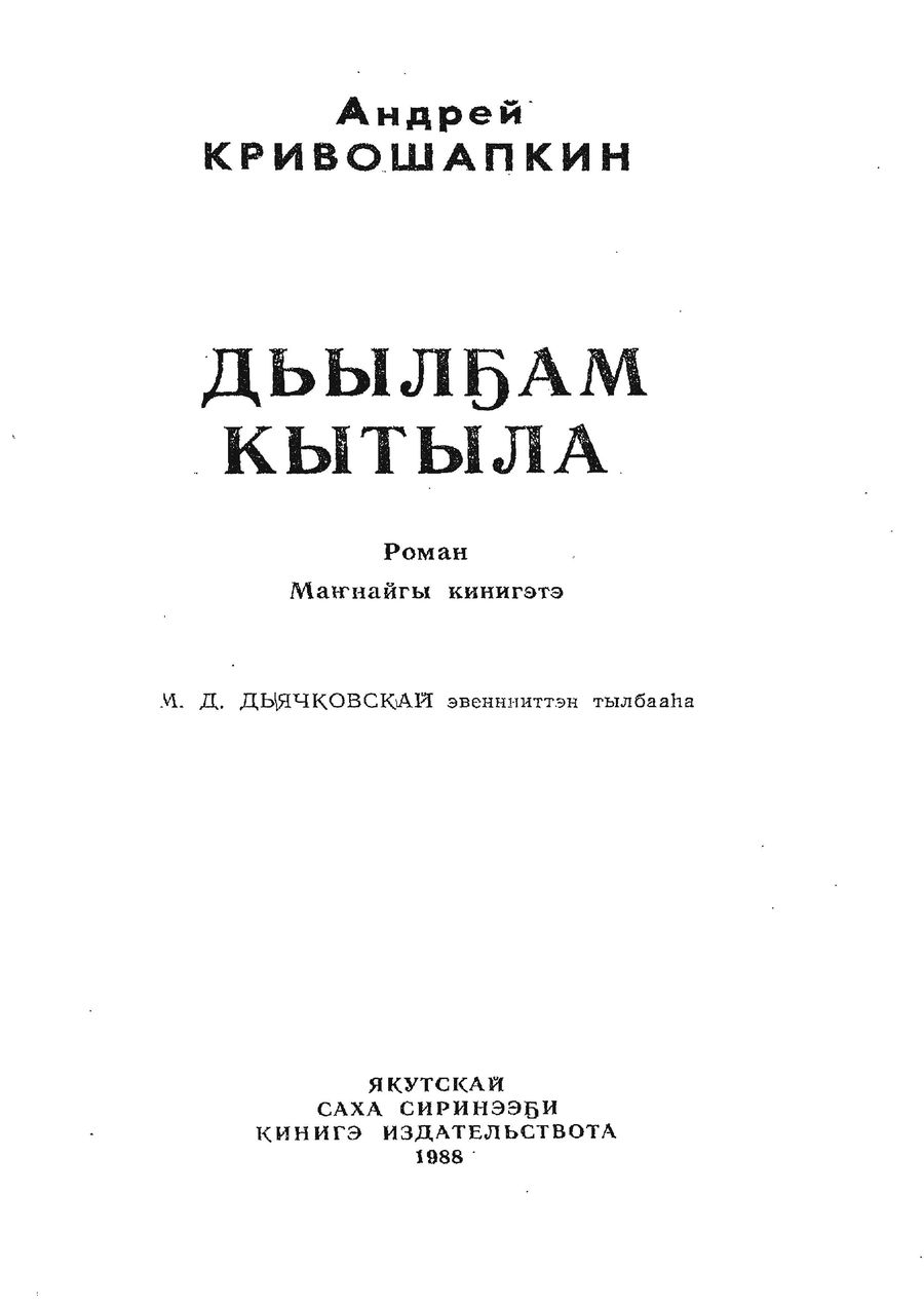 This is the HTML version of 90-55. Кривошапкин А. Дьылҕам кытыла. Якутск, 1988 Page 1
