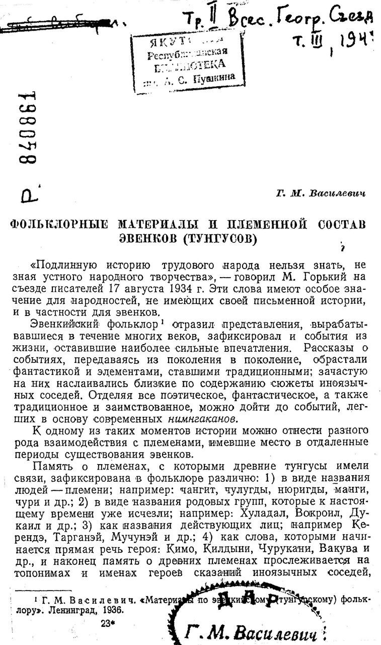 This is the HTML version of 91-76. Василевич Г. М. Фольклорные материалы и племенной состав эвенков (тунгусов). Ленинград, 1936 Page 1