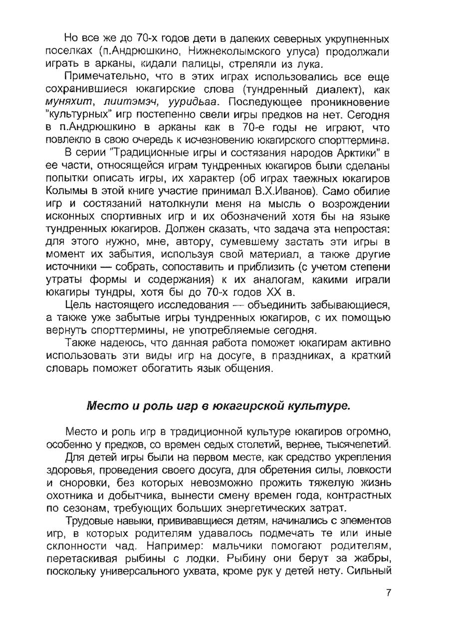 This is the HTML version of 92-28. Курилов Н. Н. Лексика спортивных игр юкагиров тундры. Якутск, 1999 Page 7