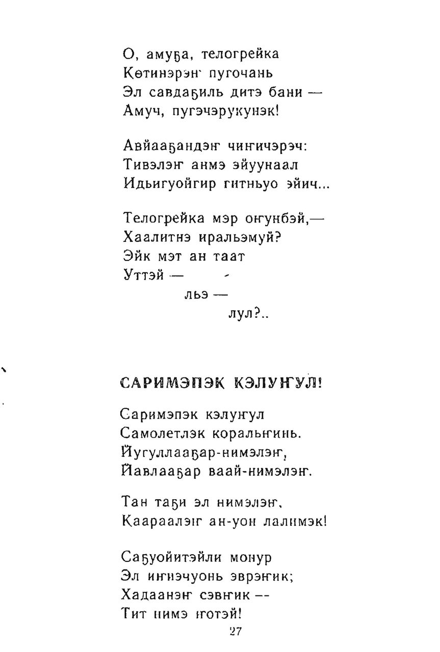 This is the HTML version of 92-46. Курилов Н. Мэт вадул моҥо. Якутск, 1988 Page 27