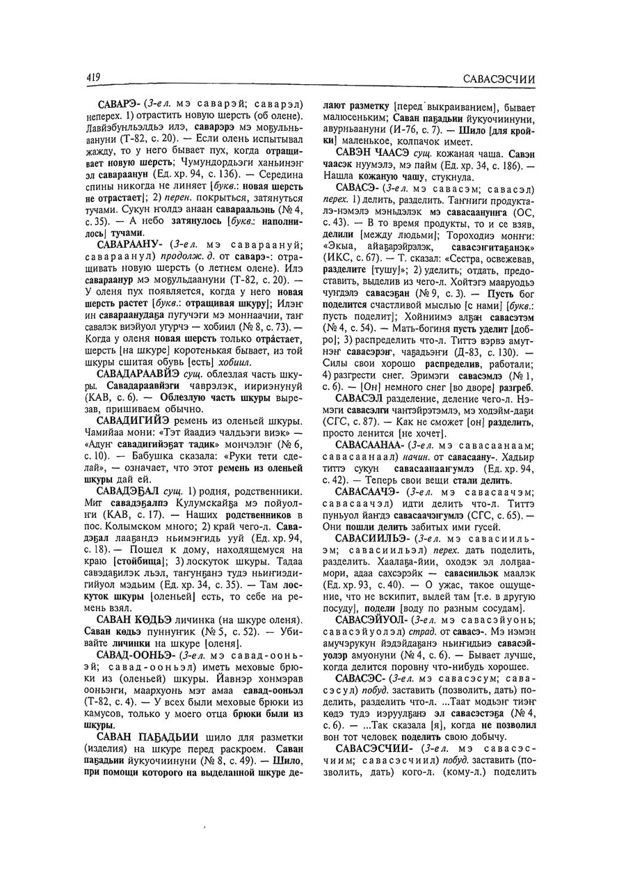This is the HTML version of 92-77. Курилов Г. Н. Юкагирско-русский словарь. Новосибирск, 2001 Page 419