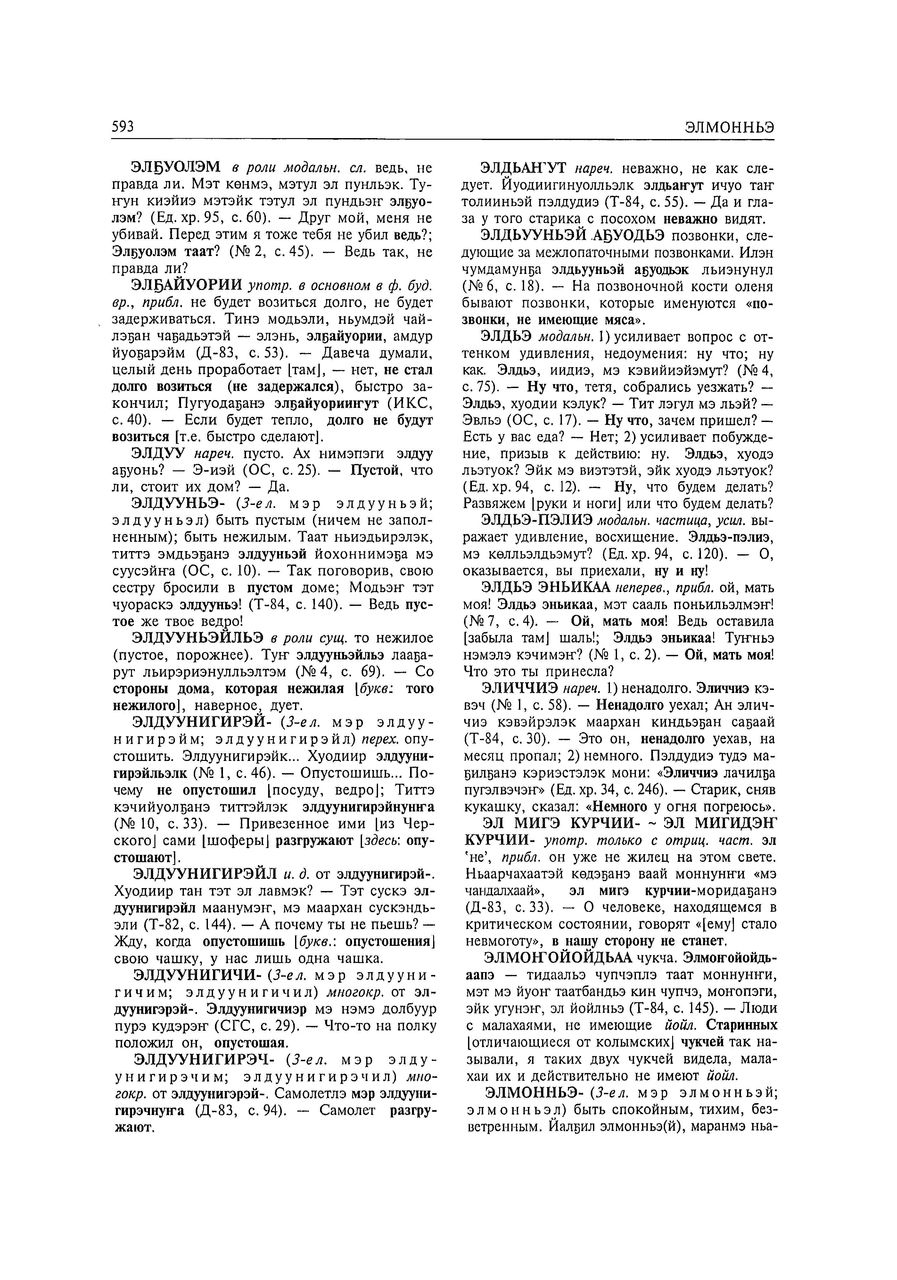 This is the HTML version of 92-77. Курилов Г. Н. Юкагирско-русский словарь. Новосибирск, 2001 Page 593