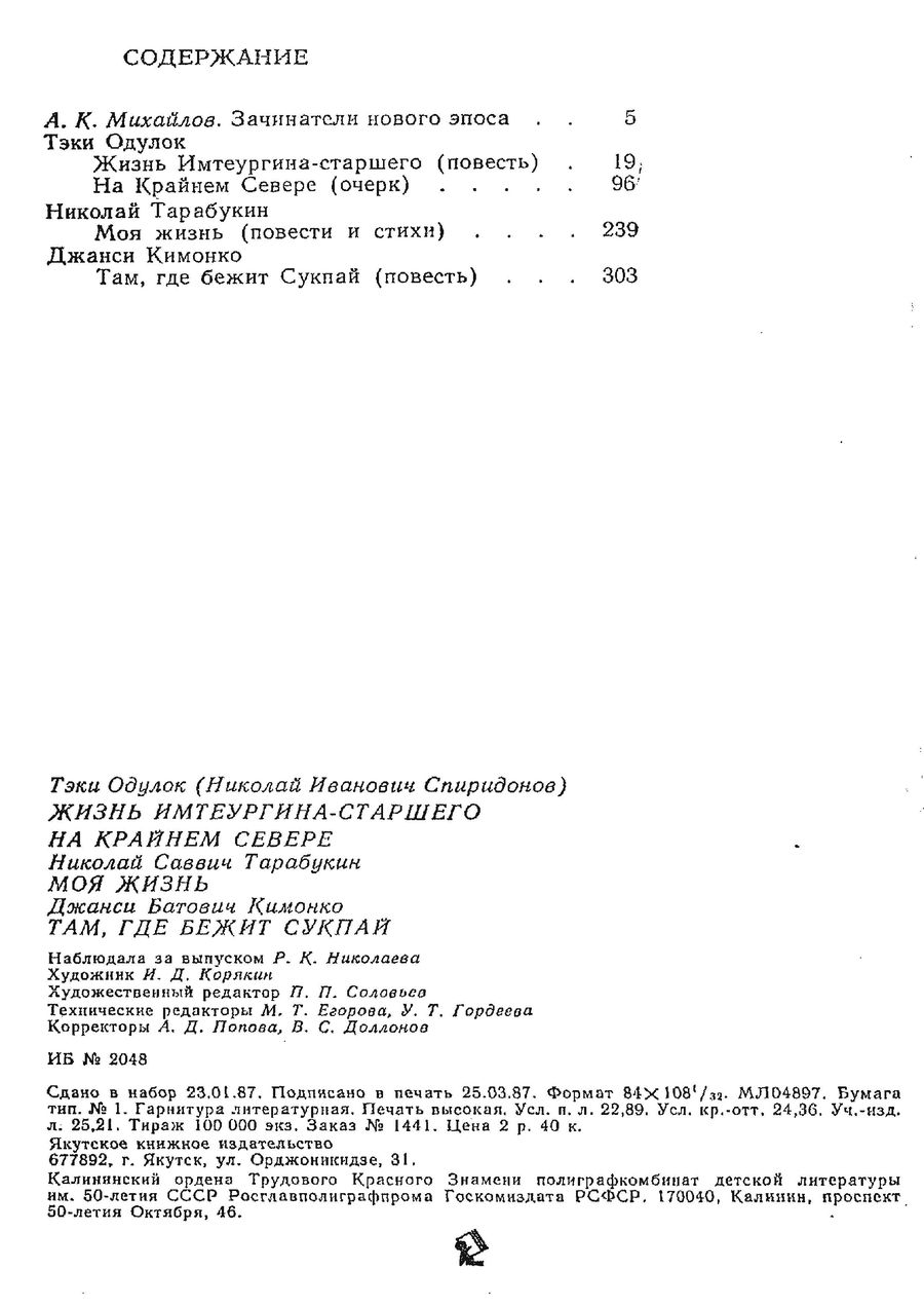 This is the HTML version of 92-9. Тэки Одулок, Тарабукин Н. Джанси Кимонко. Жизнь Имтеургина-старшего; Моя жизнь; Там, где лежит. Якутск, 1987 Page 436